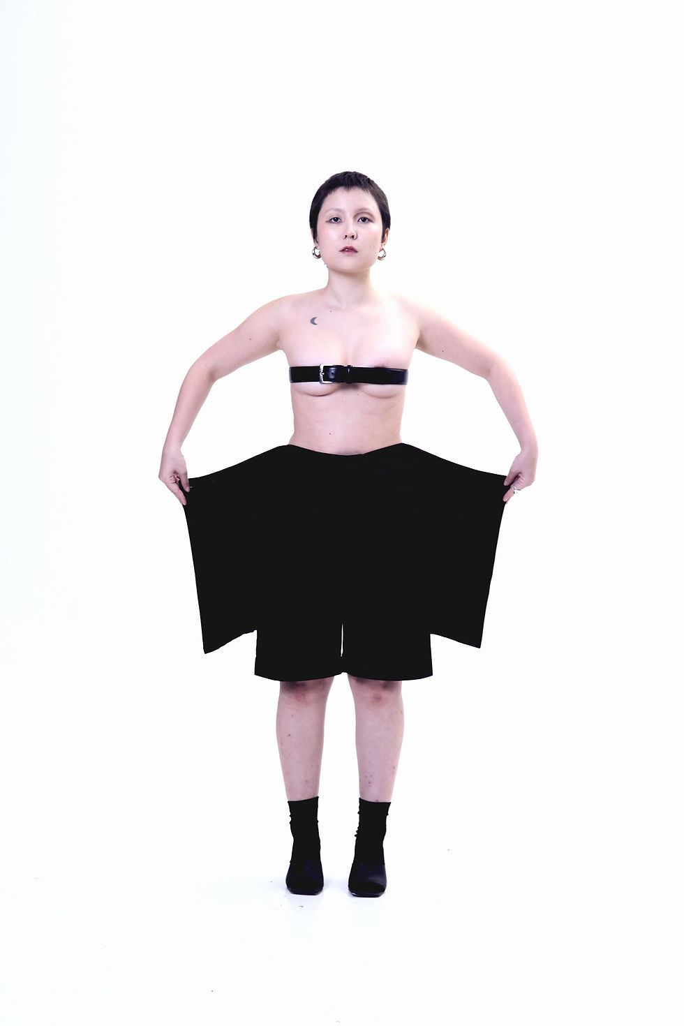 Estrutura e movimento se encontram em peças que se adaptam, se desdobram e ganham novos sentidos a cada uso. Uma bermuda, uma blusa, um vestido e uma bolsa compõem essa coleção, pensada para quem enxerga a roupa como um espaço de experimentação e expressão.